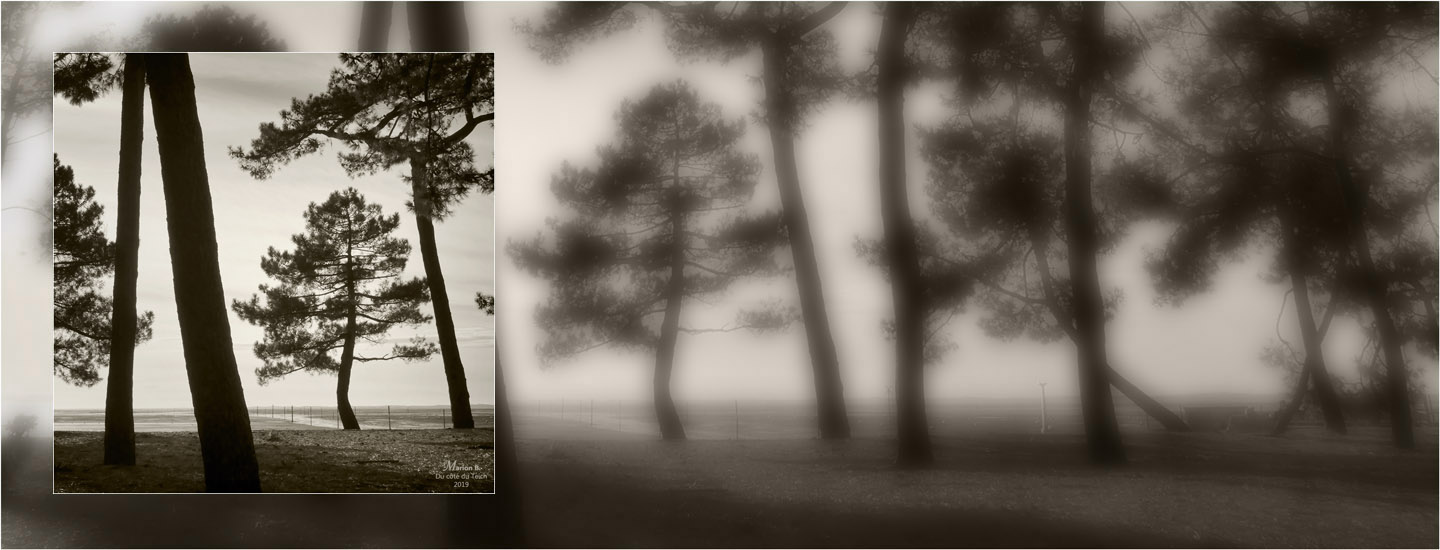 Ni balades, ni photos ce dimanche. Juste une vision un peu floue des pins du Bétey ! C’était mercredi dernier.