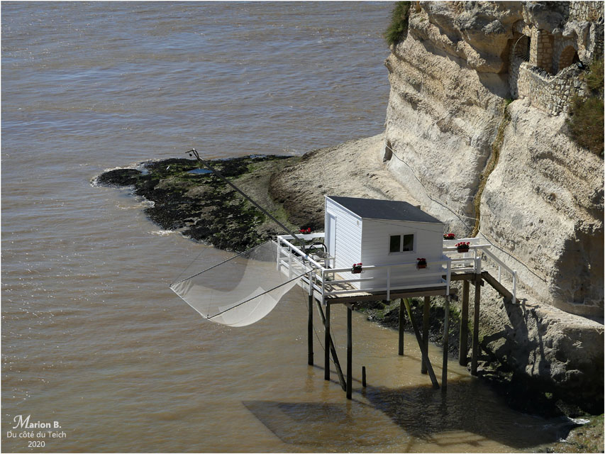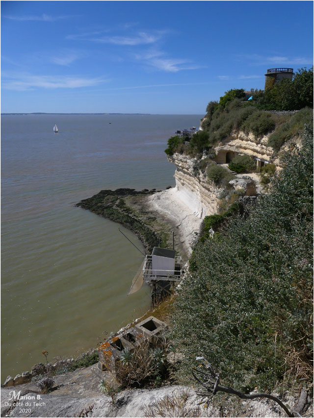Une pause incontournable, face aux falaises, habitations troglodytes et carrelets :
