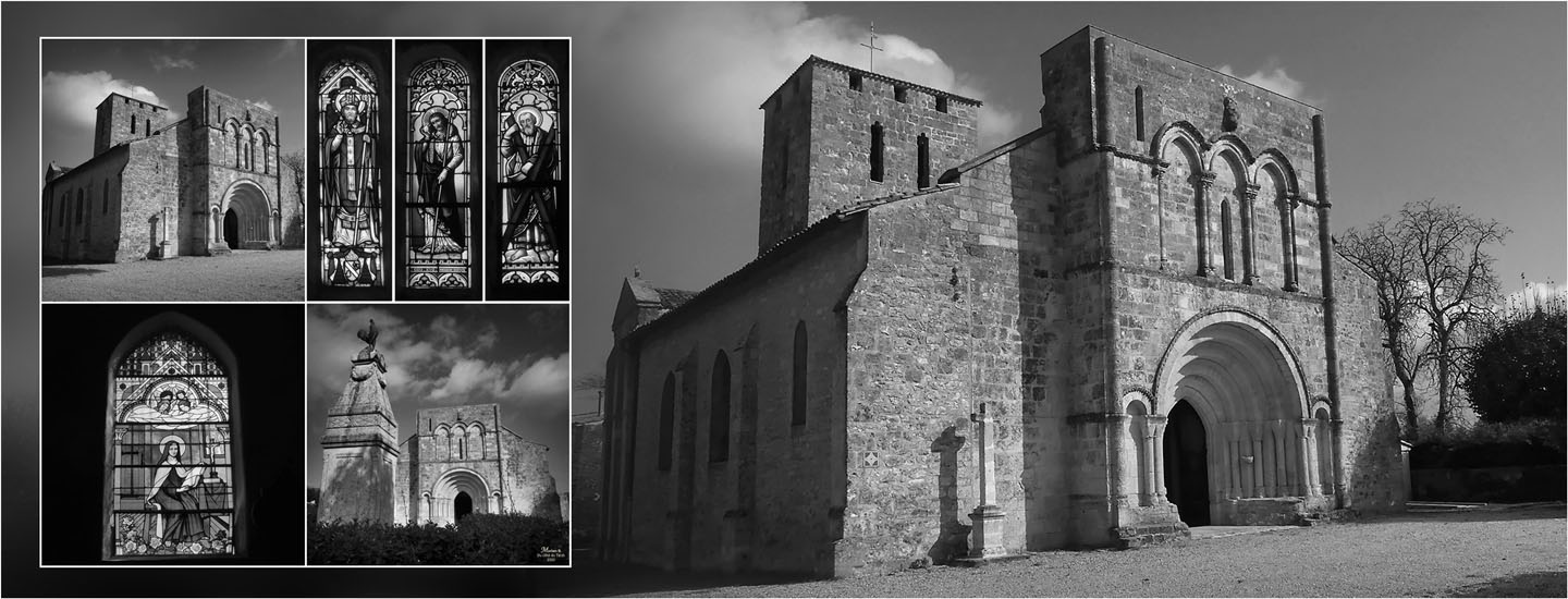 Église bâtie au début du 13e siècle. Les parties les plus anciennes, abside et chœur, pourraient dater de la fin du 12e siècle. A l’origine, elle ne comprenait qu’une nef et un transept sur lequel s’ouvraient une abside et deux absidioles. La croisée du transept était surmontée d’une tour. A un époque indéterminée furent percées des arcades plein cintre dans le mur de la nef et ajoutés des bas-côtés qui, d’abord lambrissés, furent recouverts de fausses voûtes en 1862. Le clocher fut modifié à l’époque gothique. L’absidiole sud a été démolie pour édifier à la place un escalier en hélice conduisant au clocher. D’importantes restaurations ont été réalisées en 1844 par Durand et en 1850 et 1852 par Courau. L’intérêt de l’église réside principalement dans l’ornementation intérieure du chevet. La sculpture des chapiteaux dénote des influences orientales.