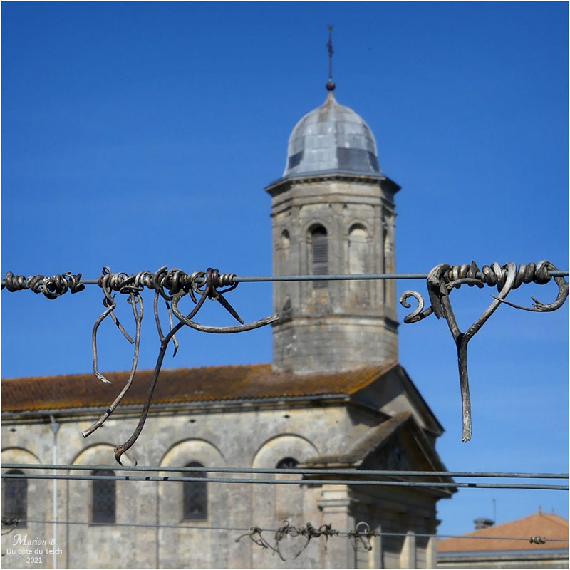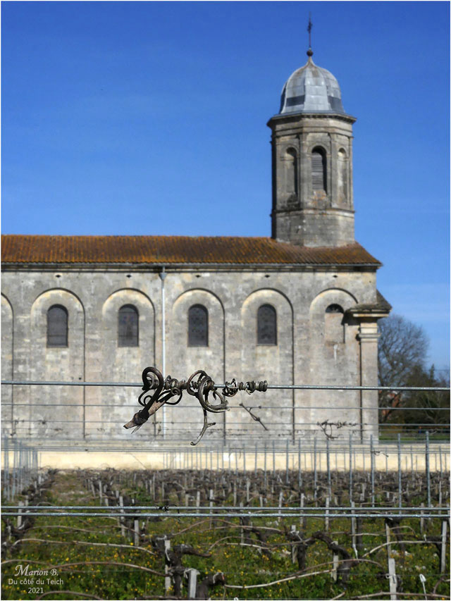 Rameaux de vigne vrillés et église Notre-Dame d’Arcins – le 23 Mars 2021