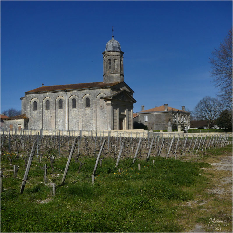 Il faisait trop froid lors de mon précédent passage à Arcins, pour un tour complet de l’église. Cette journée printanière s’y prêtait bien mieux ! Et je tiens à le préciser : non, Notre-Dame n’est pas encerclée de barbelés !