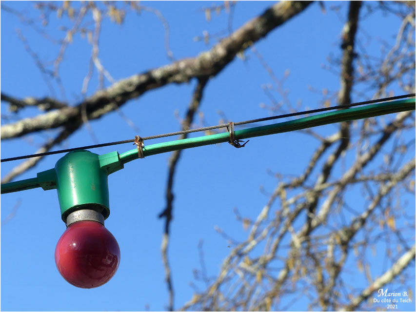 Et après trois passages, à trois saisons différentes, je reste encore sur ma faim… au propre comme au figuré, puisque les guinguettes étaient à chaque fois fermées ! Petite halte sous les loupiotes de l’une d’elles, entre le château Desplat et « la Rivière » !