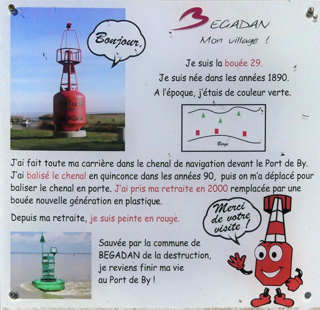 Et la bouée 29, mise en place dans le chenal du port de By dans les années 1890, déplacée à plusieurs reprises, a fini sa carrière en 2000. Elle trône désormais sur une aire de pique-nique !