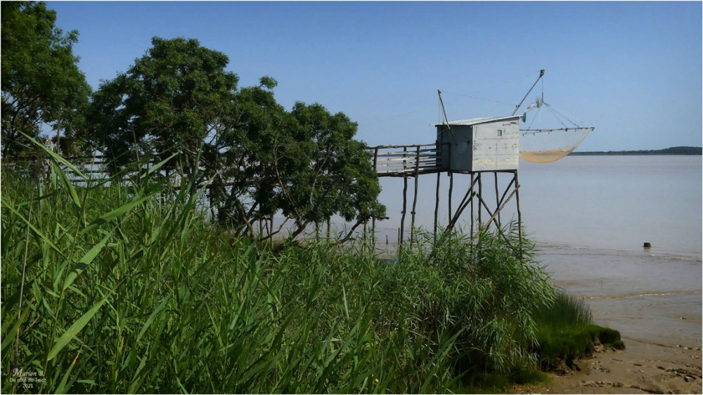 Envie de revivre encore un peu cette journée de mardi dernier dans le Médoc ! Un plan, près de l’église Saint-Symphorien indiquait des carrelets (à « la Tuilerie », je crois… d’après une carte de 1888). Difficile de résister à l’appel de la rivière, m’y voilà partie !