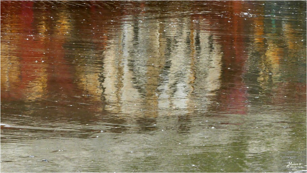 A défaut de saisir ce que représentent les reflets dans l’eau, on peut dire qu’ils sont à l’image des couleurs de l’automne :)
