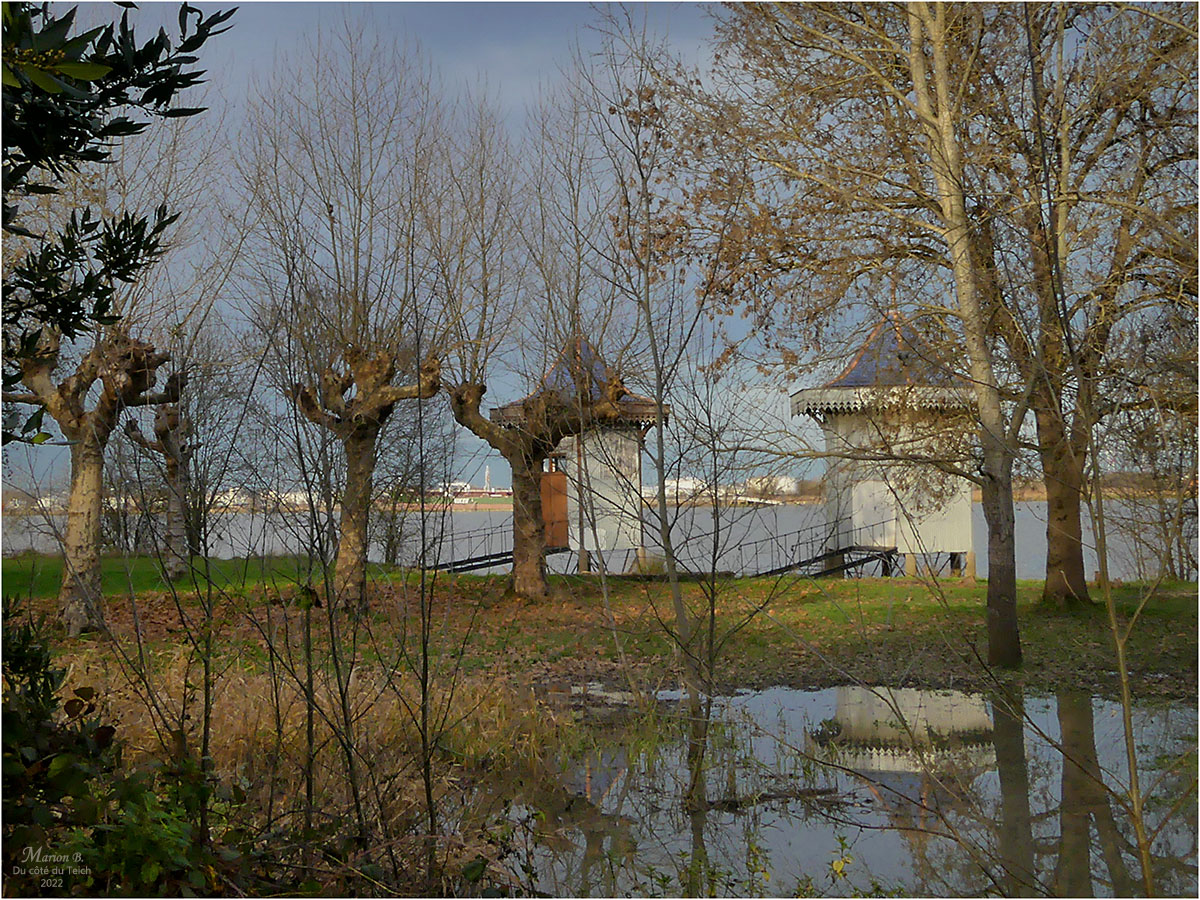 Nous voici dans le Médoc, à Macau, sur le chemin du Bord de l’Eau, plus précisément « le Bout de l’Île », où se dressent donc, pieds dans l’eau elles aussi, deux étranges « pagodes » aux origines particulières…