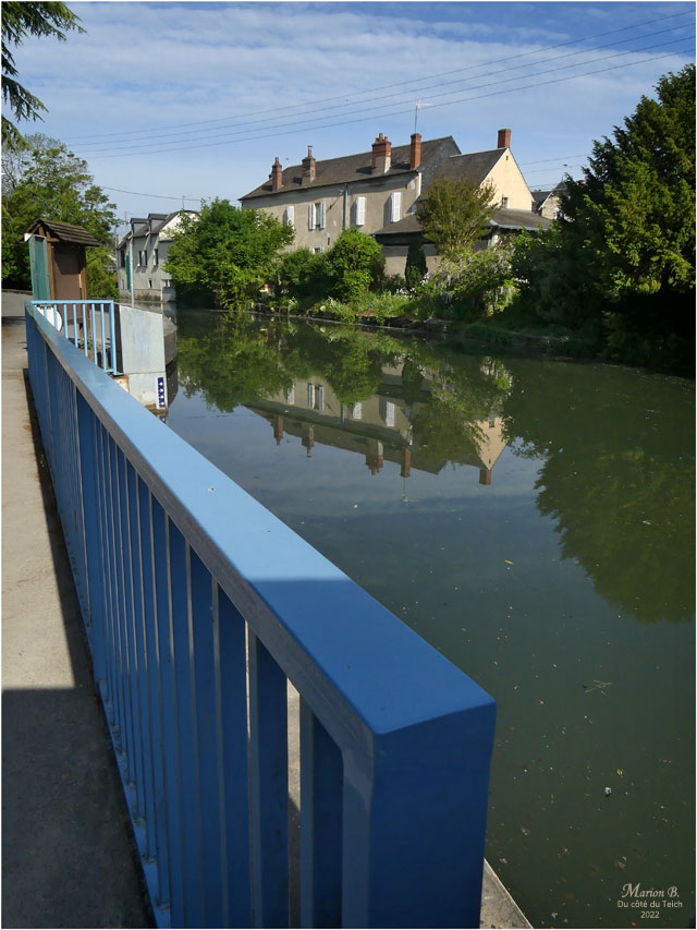 Je me serai donc contentée d’une seule boucle, dans la partie nord-ouest, panachage de celles indiquées sur le plan : quai des Maraîchers, chemin de la digue de l’Yèvre, et retour par la place des Chenus, l’allée des Ribauds, le restaurant la Courcillère et la rue de Babylone.