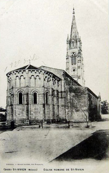 Saint-Vivien de Médoc – église vers 1905 (source image : wikipédia)