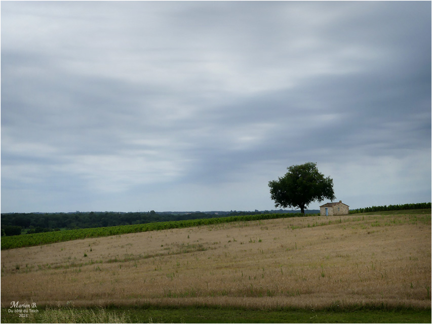 On dirait plus un paysage provençal qu’un paysage médoquin. Dans l’idée que je m’en fais évidemment. Je ne sais pas, je trouve le bleu de la porte e du volet, incongru. Tu m’as donné envie d’aller faire un pique-nique dans le coin la semaine prochaine, peut-être vers la Maréchale ?