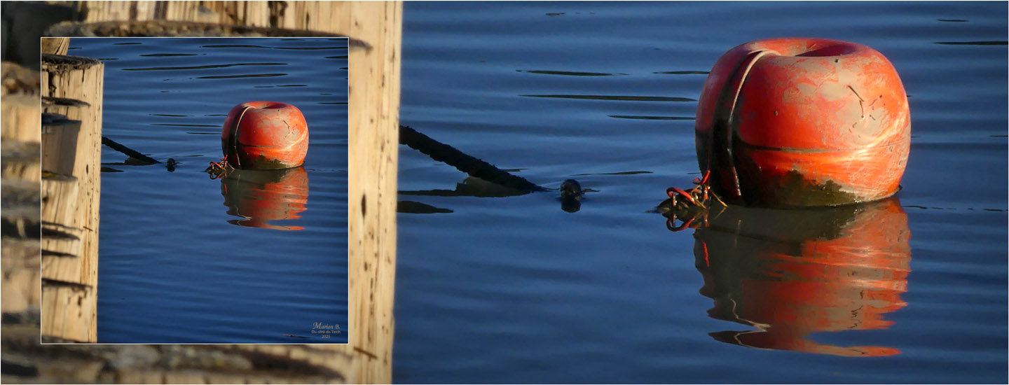 Pas d’images récentes de circonstance, ayant fui la ville et ses vitrines, et fait le sapin à quelques heures à peine du réveillon. On restera donc dans des ambiances iodées, avec ce flotteur rouge, forcément adepte du bain de Noël !
