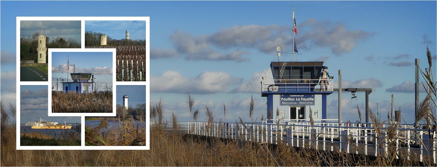 Tour de l’Aspic, Lamarque, capitainerie de Pauillac, drague Anita Conti et phare de Patiras