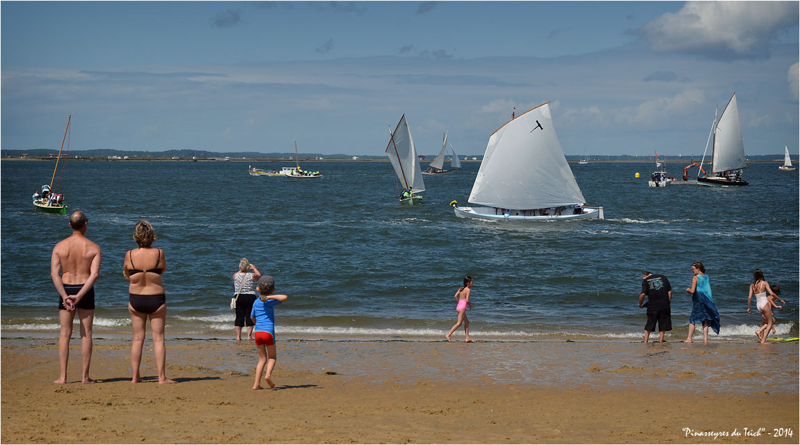 Parmi ces bons souvenirs, il y a ceux auprès de la Teychine, pinassotte du Teich, à suivre (et mitrailler !) assidûment le « championnat du monde » (!) de pinasses à voile et autres manifestations de bateaux traditionnels du Bassin d’Arcachon.