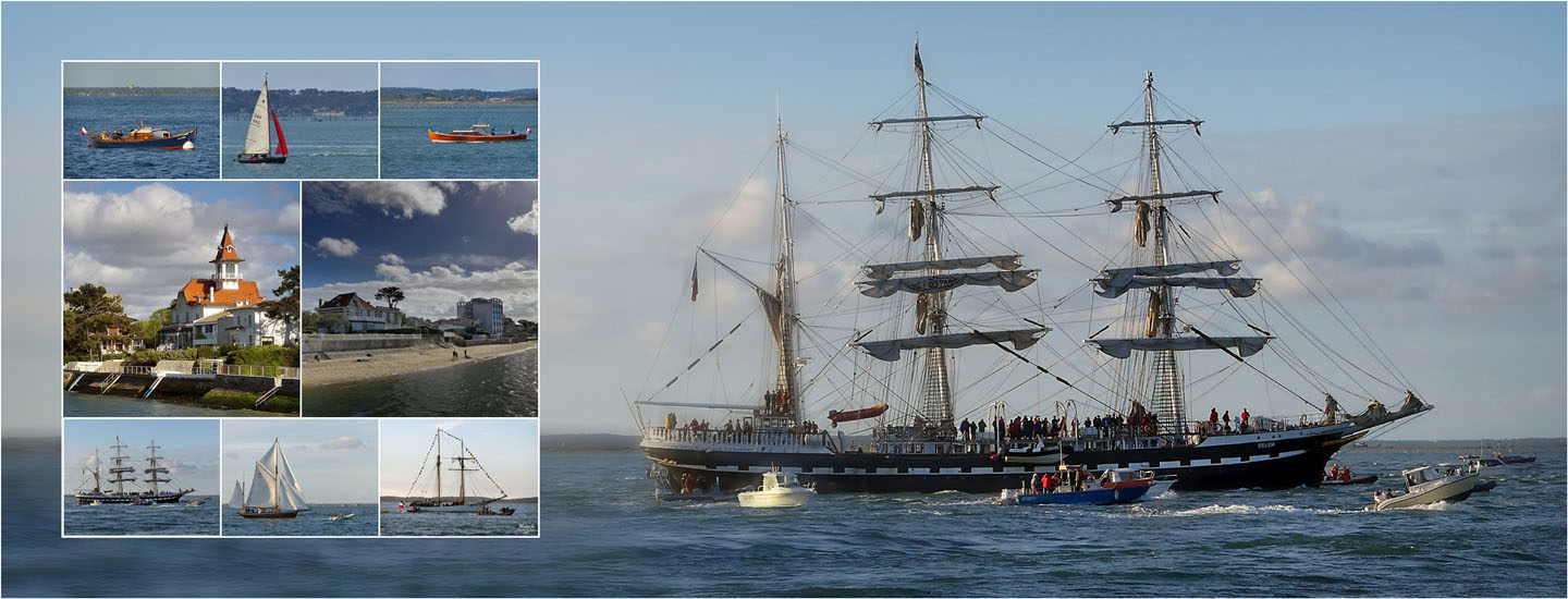 Vers 19h45, le Belem apparut au large de la plage Péreire, voiles baissées, de même que la Belle Poule. Seul le Lys Noir paradera sous voiles !
