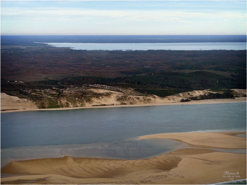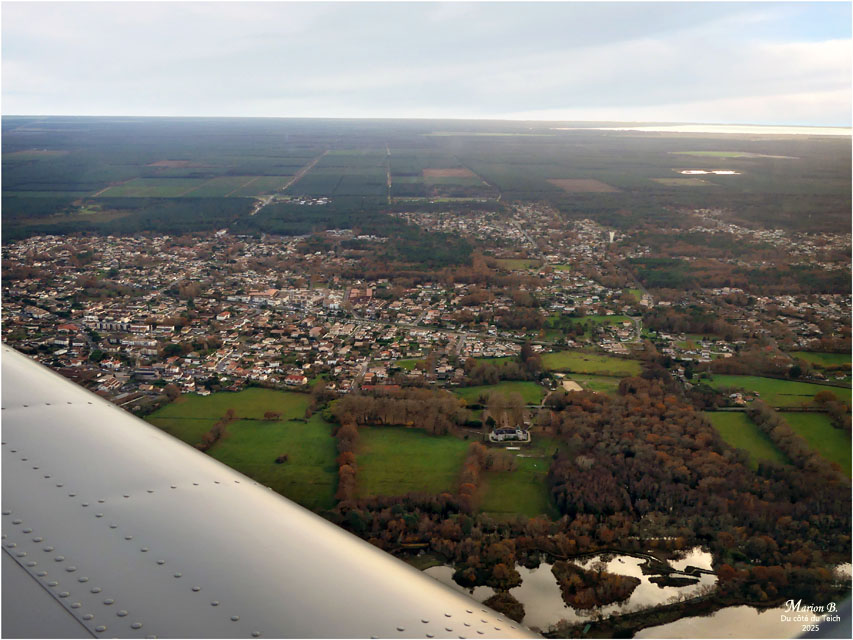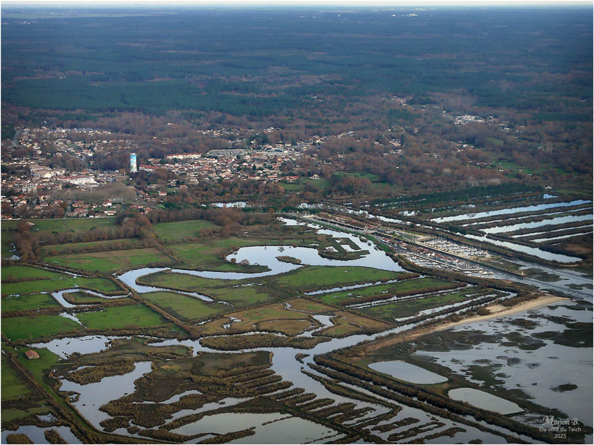 5 – Le Teich (limite de la réserve ornithologique, château de Ruat, ville et au loin lac de Cazaux-Sanguinet) :