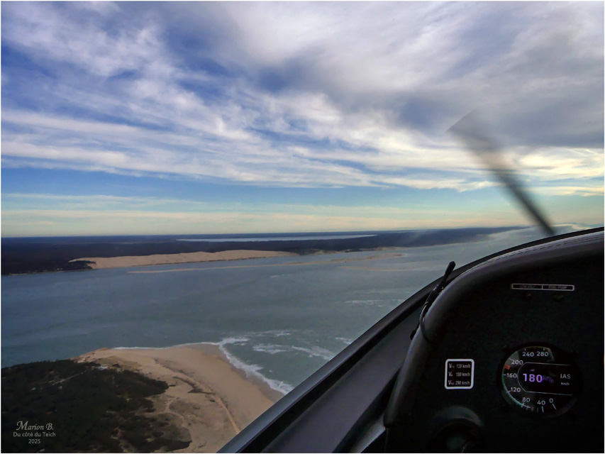 Direction donc l’aérodrome de Villemarie, à la Teste-de-Buch. La météo était très clémente et les conditions de vol idéales, au dire du pilote d’Izi-Fly.
