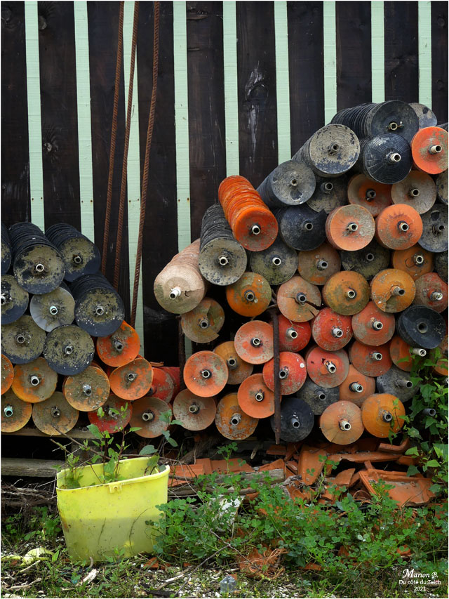 Une course dans le quartier et une brume persistante ce matin-là, me pousseront à un petit détour par le port. Tout est en place… y compris le bric-à-brac auquel je résiste rarement !
