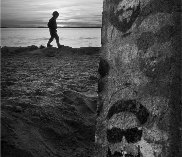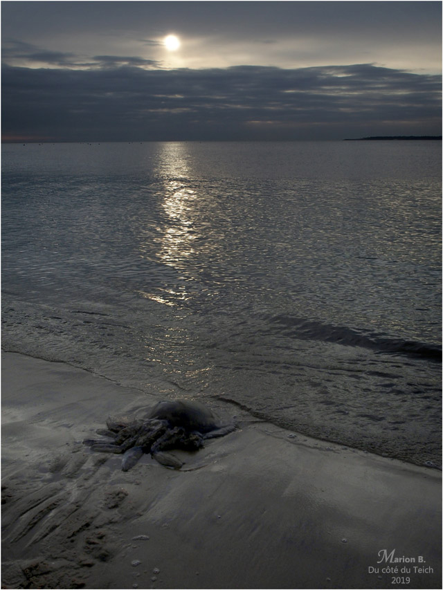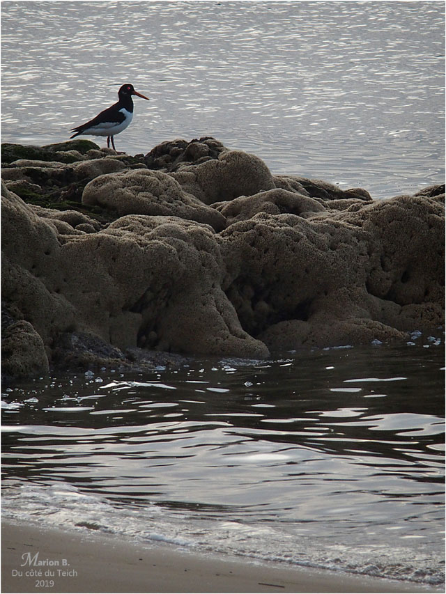 Hermelles, méduses, huîtrier pie dans les derniers rayons de soleil