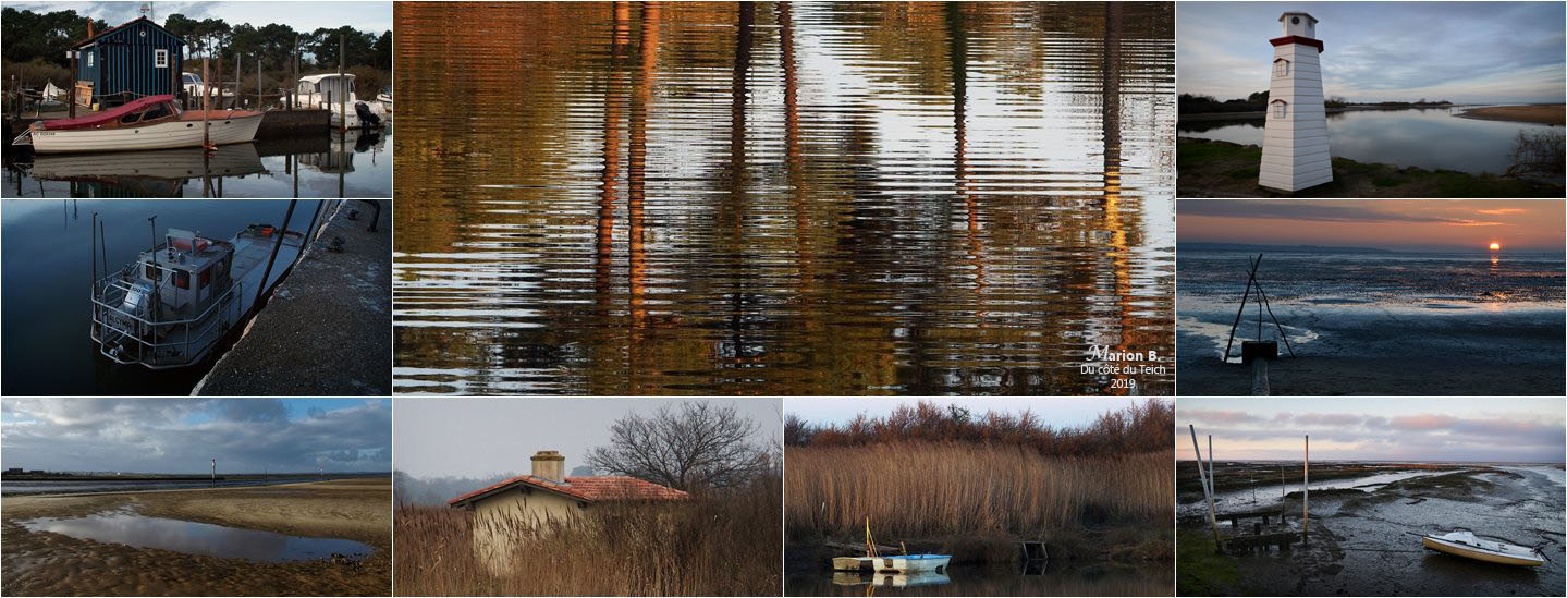 Ports de Meyran, Bordes , Larros à l’heure bleue et à Noël, estran de Meyran, étang et Leyre au Teich. De fin Novembre à début Janvier