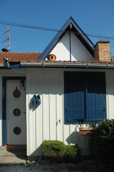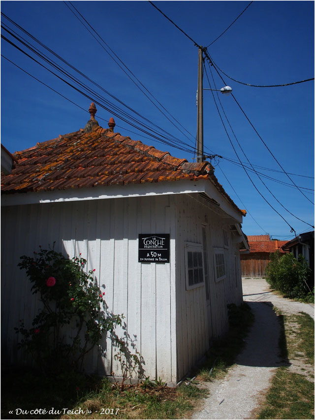 Une ruelle bordée de cabanes aux couleurs vives, parallèle à la plage, mène à une exploitation et son bassin d’affinage. A l’opposé, vers le Sud, on peut accéder aux hauteurs, sous les pins, et admirer le Bassin.