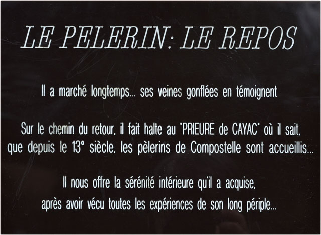 « Le pèlerinage de Saint-Jacques de Compostelle, au nord-ouest de l’Espagne, a été une formidable aventure spirituelle. Le prieuré de Cayac, autrefois hospice, reste un des derniers témoins de cette époque. »