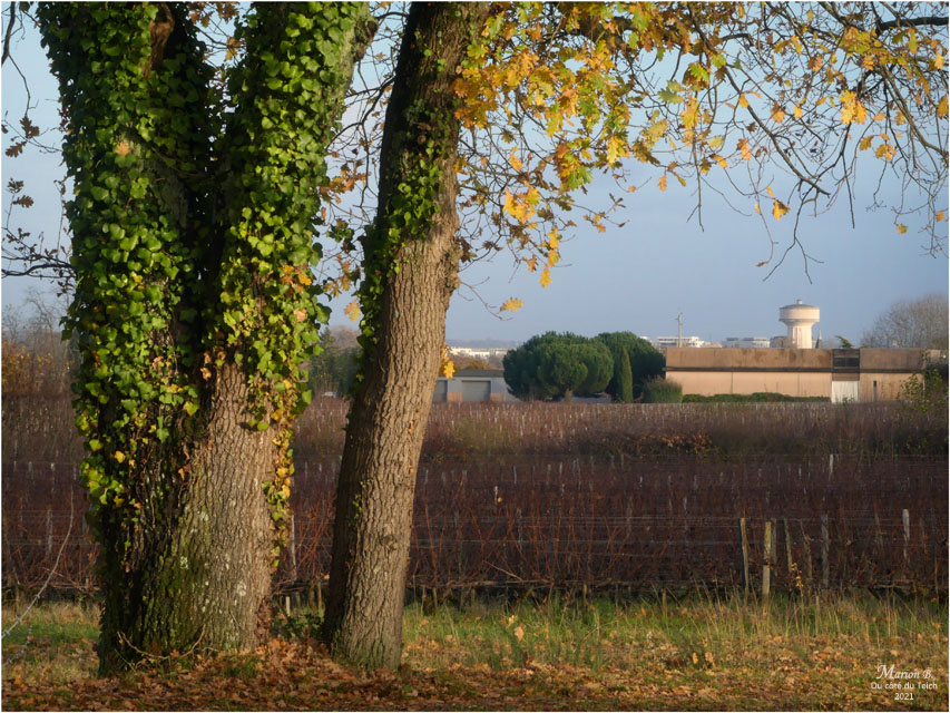 Une deuxième série d’images après un tour « en ville », pour quelques couleurs d’automne et se situer par rapport à Bordeaux dont on aperçoit le Tripode (CHU Pellegrin).