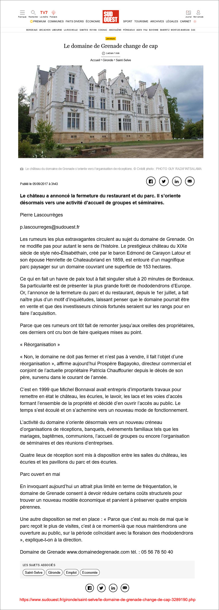 Je regrette que le très beau domaine de Grenade, classé « jardin remarquable », réputé pour ses rhododendrons, et où j’avais fait deux balades formidables, ne soit plus ouvert au public, mais seulement réservé à de l’événementiel.