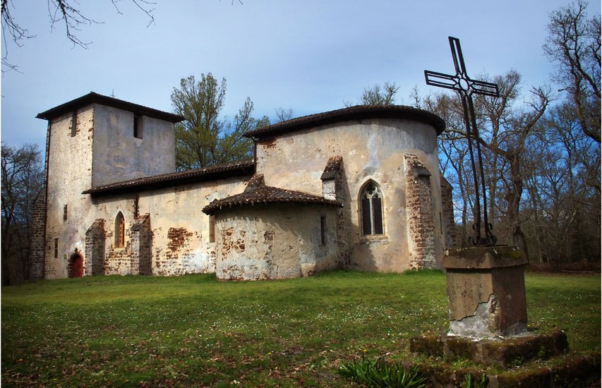L’église du vieux Lugo (village aujourd’hui disparu) se situe en pleine forêt, sur la commune de Lugos.