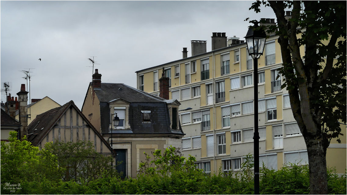 Jeudi 12 Mai, au matin : autour du jardin des Prés Fichaux, puis sur le parcours vers la maison de la Reine Blanche, l’Hôtel-Dieu, la Halle au blé et l’école Auron, le moulin de la Chappe ; on passera par l’avenue de Peterborough (autour du centre commercial l’Avaricum), la rue Cambournac, la rue Gambon, le boulevard Gambetta, le boulevard de Juranville, les berges de l’Auron. Le soleil, lui, boudait un peu, mais je n’avais pas boudé mon plaisir pour cette nouvelle journée-marathon dans Bourges !!