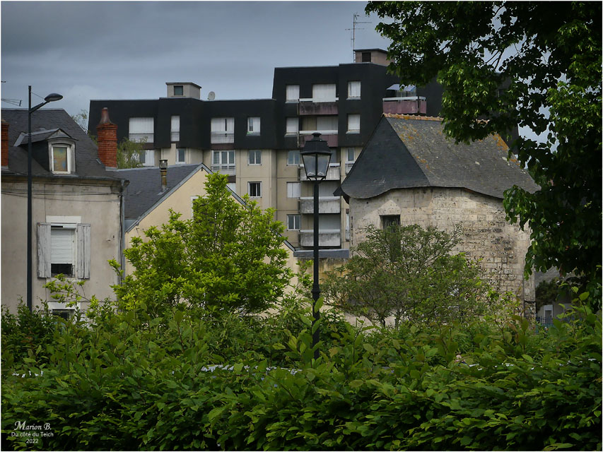 Jeudi 12 Mai, au matin : autour du jardin des Prés Fichaux, puis sur le parcours vers la maison de la Reine Blanche, l’Hôtel-Dieu, la Halle au blé et l’école Auron, le moulin de la Chappe ; on passera par l’avenue de Peterborough (autour du centre commercial l’Avaricum), la rue Cambournac, la rue Gambon, le boulevard Gambetta, le boulevard de Juranville, les berges de l’Auron. Le soleil, lui, boudait un peu, mais je n’avais pas boudé mon plaisir pour cette nouvelle journée-marathon dans Bourges !!