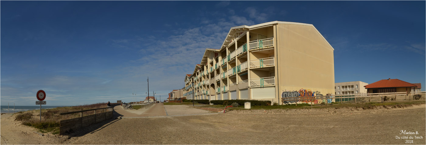 Mes seuls souvenirs de Mimizan-plage remontaient à mon adolescence, lors d’un séjour en pleine saison estivale. Jeunesse et contexte mis à part, j’ai davantage apprécié la cité balnéaire en déambulant dans ses rues quasi désertes ! Perplexe cependant face à ces constructions (assez jolies d’ailleurs) en première ligne, alors que le risque de submersion marine est enfin pris au sérieux.