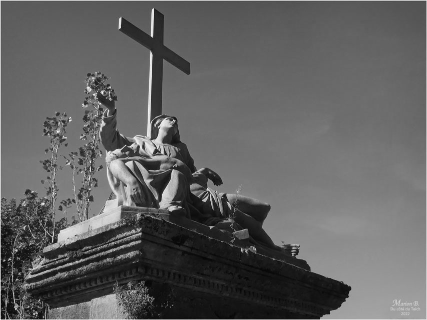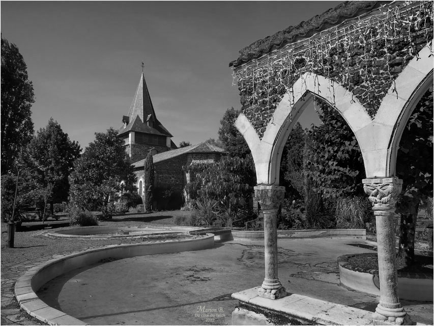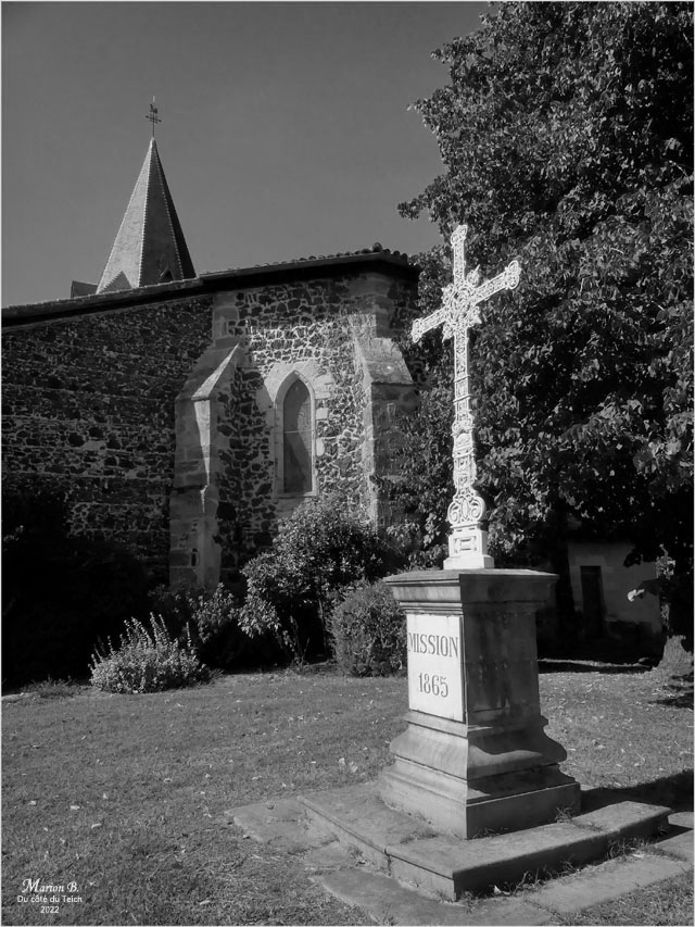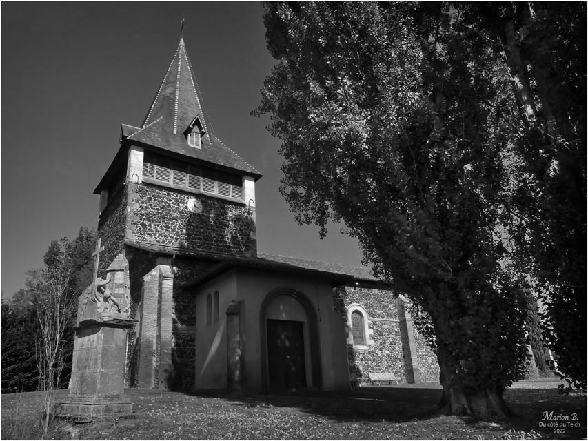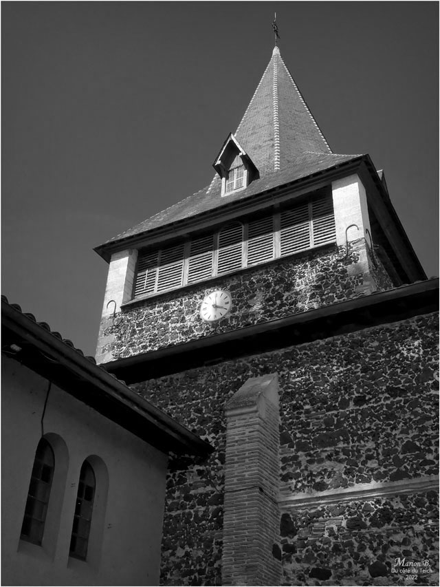 Coup de coeur confirmé pour ce clocher, ainsi que pour le kiosque, les constructions en cours sur la place, les terrasses accueillantes de chez Flo et la tonnelle du boucher-charcutier ! Mais il me faudra revenir une journée ensoleillée pour des vues intérieures de l’église qui m’a paru particulièrement sombre… et peut-être bien aussi pour une pause gourmande !
