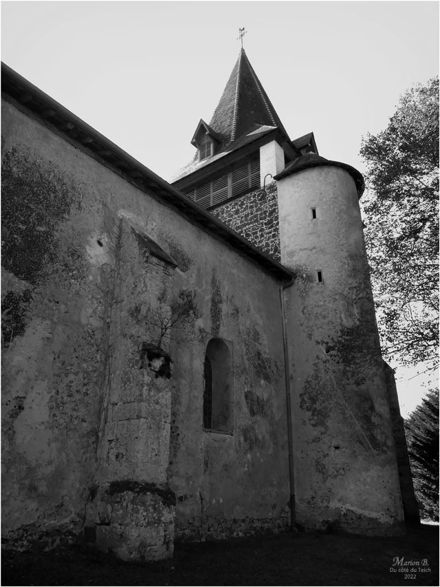 Sa nef était flanquée jusqu’en 1921 d’une tour fortifiée datant de la guerre de Cent Ans, constituant la plus ancienne partie de l’édifice (XIVe siècle). Elle était dotée d’une salle haute percée de meurtrières et abritant deux petits canons à main, également appelés couleuvrines. Démolie, elle est remplacée par le clocher-porche actuel achevé en 1922.