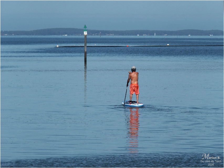 Alors, en cette veille de rentrée, je vous amène piquer une tête, ou si vous préférez, marcher sur l’eau (!), flemmarder sous un parasol , faire du paddle et même, tour de France oblige, du vélo !