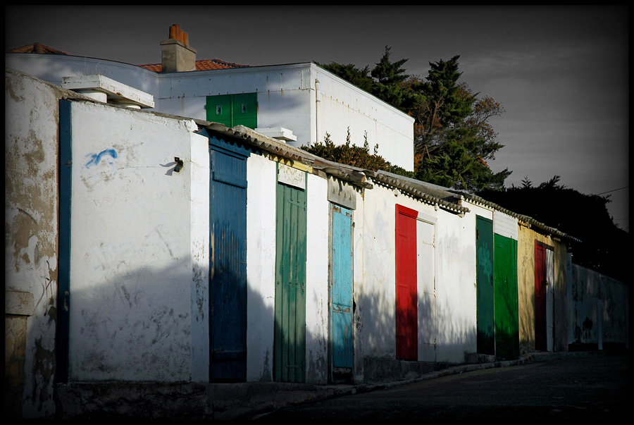 CP-DSC_3826-cabanons ciel N&B + vignettage 6 février 2013 900 × 603 Arcachon, Abatilles, Péreire, le Moulleau