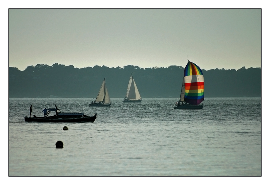 CP-DSC_7681-spi couleurs, 2 voiliers blancs & pinasse, 6 février 2013 900 × 618 Arcachon, Abatilles, Péreire, le Moulleau