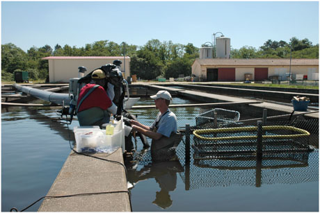 De la 3ème à la 6ème année, des tris réguliers sont réalisés pour regrouper les esturgeons de tailles identiques. On procède aussi à leur vaccination :