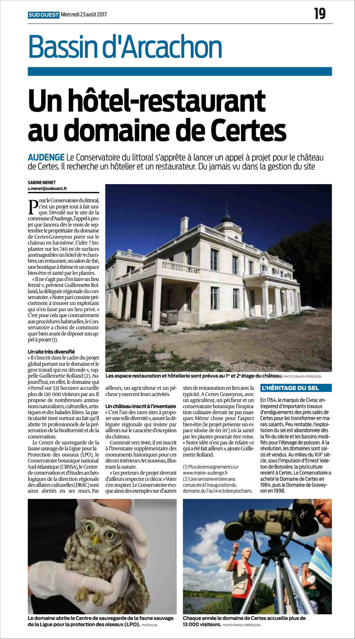 Ce week-end, pour les 50 ans du Conservatoire du Littoral et les 30 ans de la LPO Aquitaine, le domaine de Certes et Graveyron, à Audenge, ouvre ses portes et propose diverses animations..