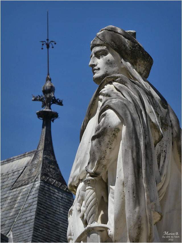 De là vient peut-être que cette ville semble faite pour les rêves. […] À ceux qui viennent à Bourges pour son Printemps, je recommande un détour par l’hiver des temps révolus, qui vivent ici une manière d’éternité. Et je leur donne rendez-vous aussi au coeur de l’été, quand les parterres fleuris du jardin de l’archevêché répondent aux ciels immenses du Berry et proposent au promeneur, avec la bénédiction de saint Etienne, un bonheur qu’on croyait n’appartenir qu’à l’Italie.