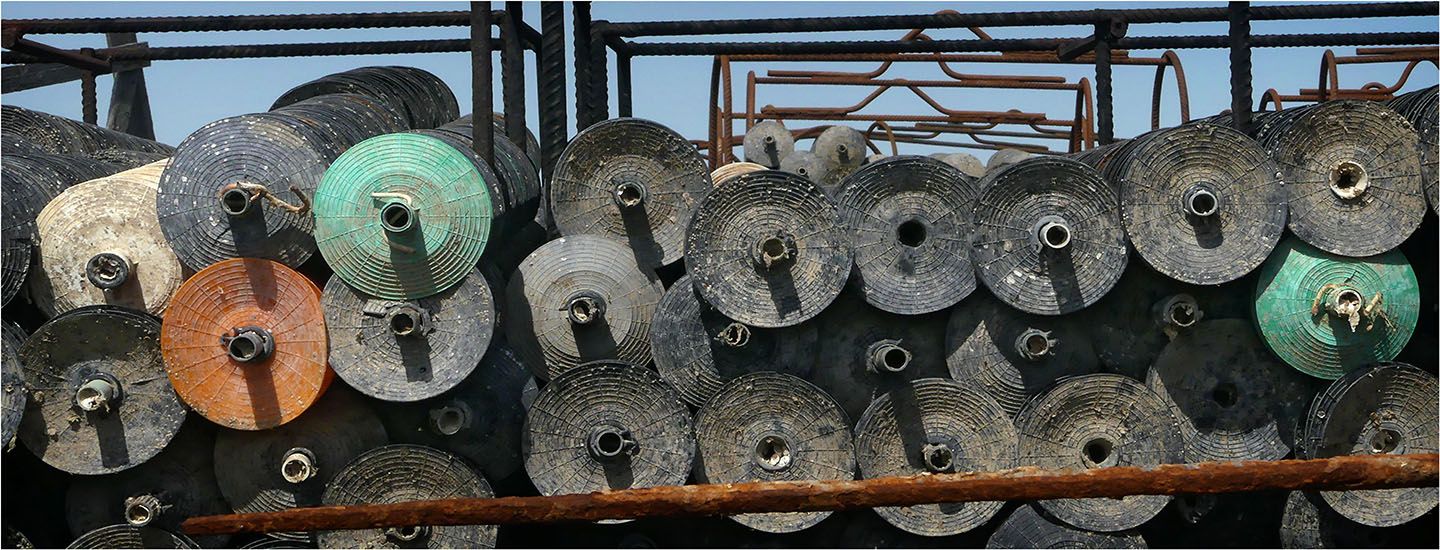 Pour les lecteurs de passage sur le blog et dans la région, pas forcément amateurs d’huîtres et intéressés par leur « élevage », je précise simplement que les diverses « cages » en ferraille sont destinées à réunir et acheminer les collecteurs de naissains (coupelles, tubes, tuiles chaulées) sur les parcs. Les tables accueillent les poches durant la croissance des jeunes huîtres. (en savoir un peu +)