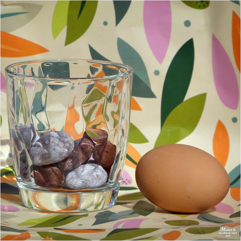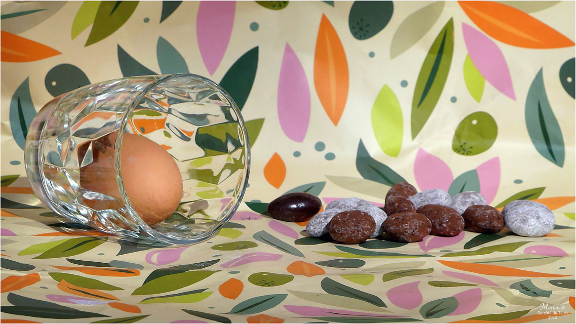 Le papier à l’imprimé printanier qui entourait une Colombe de Pâques tiendra presque le premier rôle dans cette série très kitsch !!